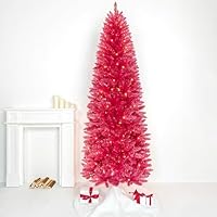7.5Ft Prelit Slim Artificial Pink Tinsel Christmas Tree only $37.49