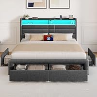 Queen Size Bed Frame with 4 Storage Drawers & Charging Station only $215.99