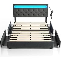 Rolanstar Queen Bed Frame with LED Lights, Charging Station, 4 Drawers only $159.99
