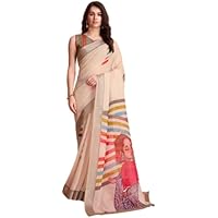 Women’s Art Face Prints Handloom Linen Cotton Ready To Wear Saree only $30.00