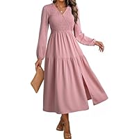 2025 Smocked Empire Waist Ruffle Tiered Swing Split Maxi Dress only $14.50