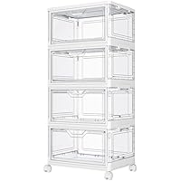 4-Tier 23 QT Folding Box Clear Storage Bins with Wheels only $35.99