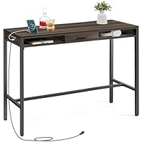 Get Vasagle 47.2 Inch Bar Table with Power Outlets, Long Rectangular High Top Pub Table w/ Movable Drawer 2 Hooks Narrow Storage (Ash Brown) for only $43.00.