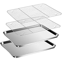 Get Giuoiduo Stainless Steel Baking Sheets with Cooling Racks, Nonstick Pan, Warp Proof & Rust Proof & Easy to Clean, Size 12.4 X 9.6 X 1 Inch for only $10.45.