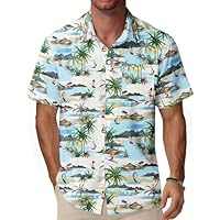 Men’s Button Down Short Sleeve Printed Tropical Hawaiian Shirt only $6.36