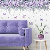 Purple Rose Butterfly Wall Murals Peel and Stick Wall Art Decal only $4.99