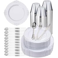 350-Piece Silver Plastic Dinnerware Set for 50 Guests only $35.99-$37.99