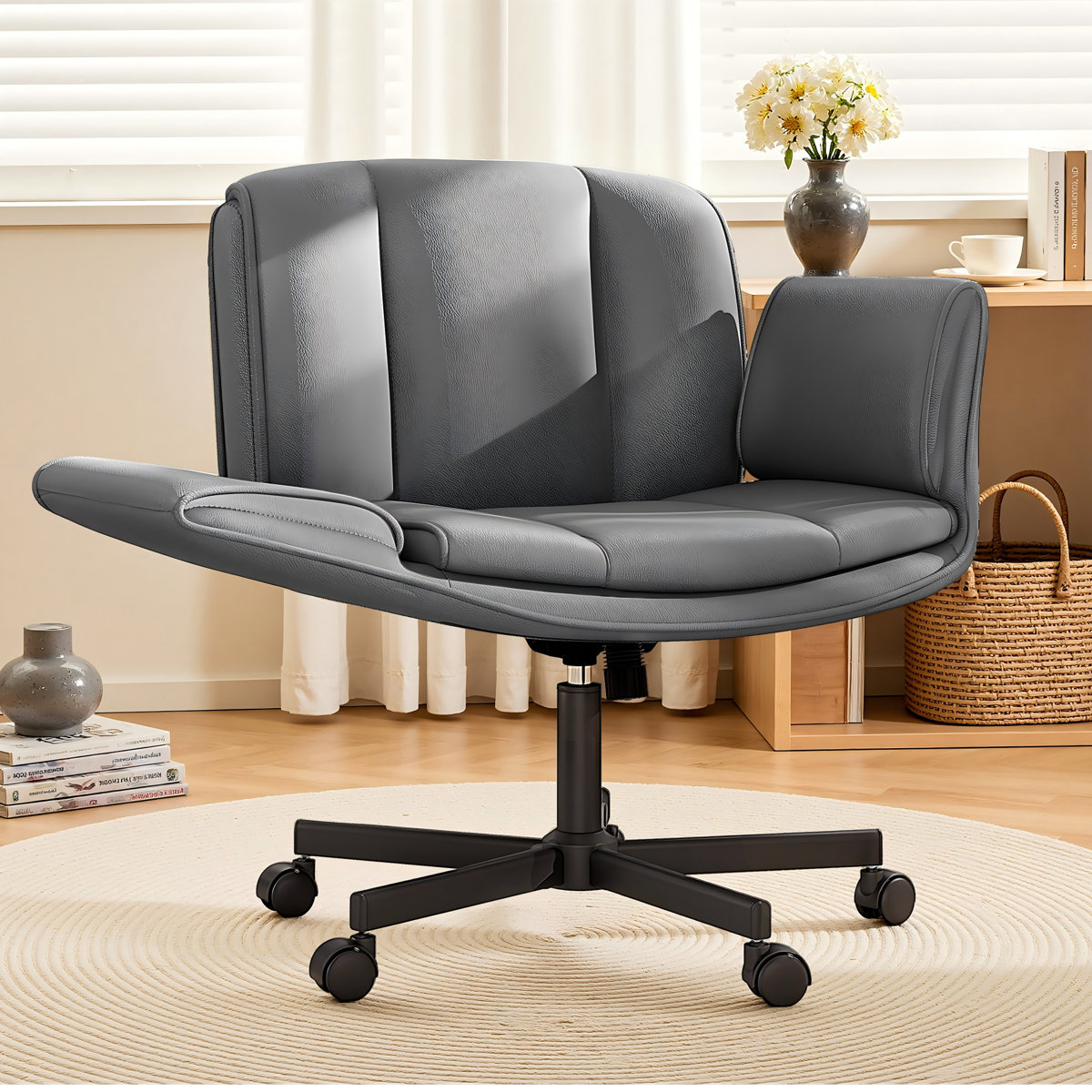 Inbox Zero Comfy Wide Criss Cross Chair with Wheels & Armrests only $134.99