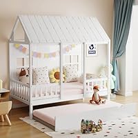 77.95” Twin Wooden Playhouse Kids Bed Frame w/ Trundle only $249.98